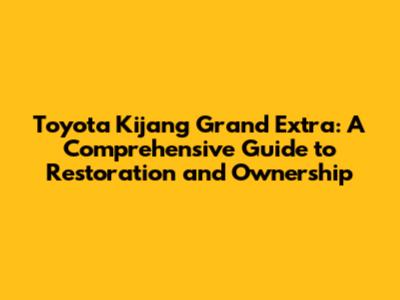 Toyota Kijang Grand Extra: Restoration & Guide