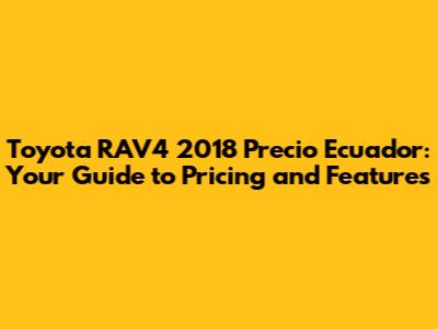 Toyota RAV4 2018 Price In Ecuador: A Comprehensive Guide