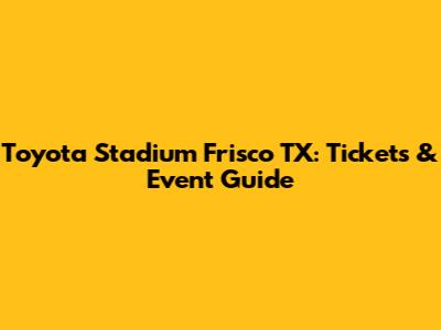 Toyota Stadium Frisco TX: Tickets & Event Guide
