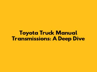 Toyota Truck Manual Transmissions: A Deep Dive