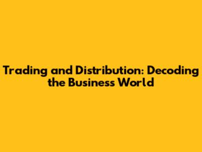 Trading And Distribution: Decoding The Business World