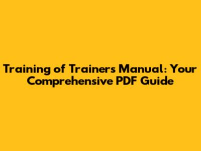 Training Of Trainers Manual: Your Comprehensive PDF Guide