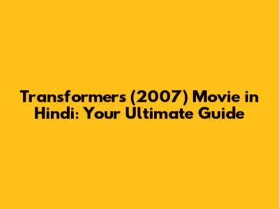 Transformers (2007) Movie In Hindi: A Complete Guide