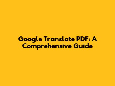 Translate PDF With Google Translate: A Quick Guide
