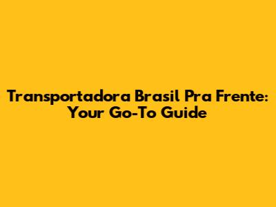 Transportadora Brasil Pra Frente: Your Go-To Guide