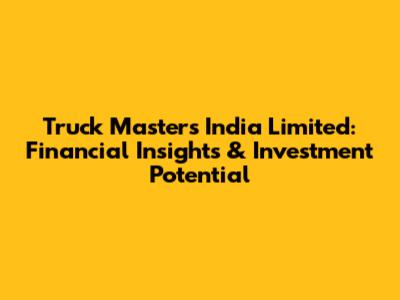Truck Masters India Limited: Financial Insights & Investment Potential