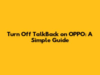 Turn Off TalkBack On OPPO: A Simple Guide