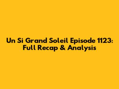 Un Si Grand Soleil Episode 1123: Full Recap & Analysis