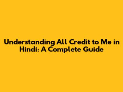 Understanding 'All Credit To Me' In Hindi: A Complete Guide