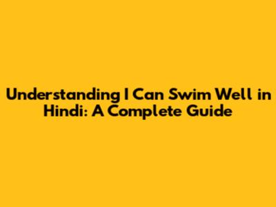 Understanding 'I Can Swim Well' In Hindi: A Complete Guide