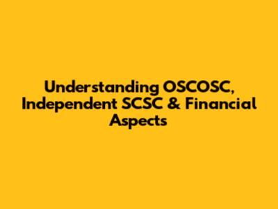 Understanding OSCOSC, Independent SCSC & Financial Aspects