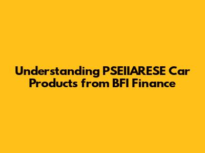 Hey guys, let's dive into something that might seem a bit technical at first, but is actually super important if you're looking to finance a car: PSEIIARESE car products from BFI Finance. In this article, we'll break down what PSEIIARESE is all about, what it means for you as a potential car buyer, and why it's something you should definitely understand before signing on the dotted line. I know, finance jargon can be a real snooze-fest, but trust me, understanding this stuff can save you some serious headaches and maybe even some money down the road. So, grab a coffee (or your beverage of choice), and let's get started.