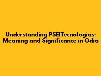 Understanding PSEITecnologias: Meaning And Significance In Odia