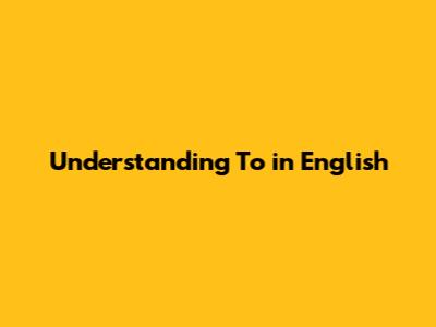 Understanding 'To' In English