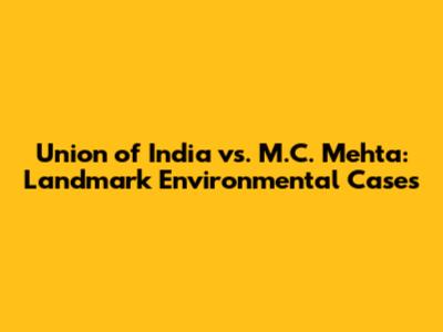 Union Of India Vs. M.C. Mehta: Landmark Environmental Cases