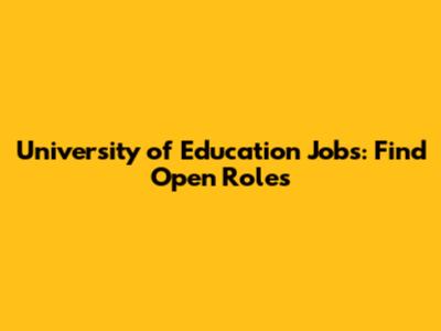 University Of Education Jobs: Find Open Roles