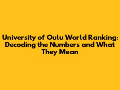 University Of Oulu: Rankings, Reputation, And Why It Matters
