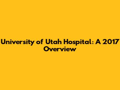 University Of Utah Hospital: A 2017 Overview