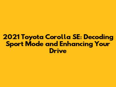 Alright, let's get the basics down first. What is Sport Mode in the 2021 Toyota Corolla SE? Simply put, it's a driving setting designed to make your car feel more responsive and, well, sportier. It's like giving your Corolla a shot of adrenaline. When you engage Sport Mode, the car's computer adjusts several key systems to enhance performance. These adjustments typically include the engine, transmission, and sometimes even the steering.