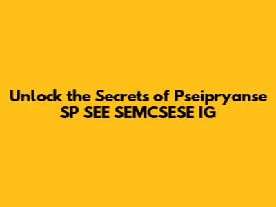 Unlock The Secrets Of Pseipryanse SP SEE SEMCSESE IG