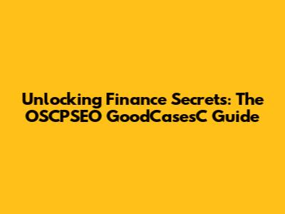 Unlocking Finance Secrets: The OSCPSEO GoodCasesC Guide