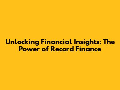Unlocking Financial Insights: The Power Of Record Finance