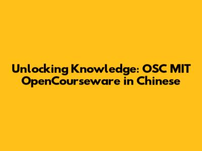 Unlocking Knowledge: OSC MIT OpenCourseware In Chinese