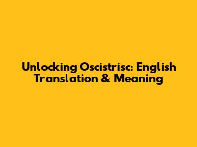 Unlocking Oscistrisc: English Translation & Meaning