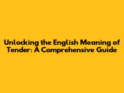 Unlocking The English Meaning Of 'Tender': A Comprehensive Guide