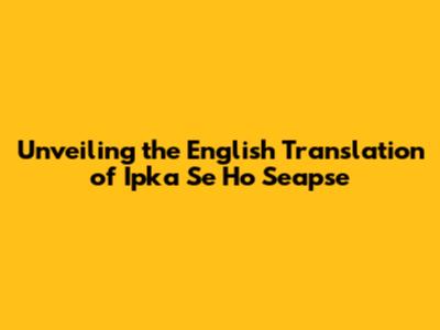 Unlocking The English Meaning Of 'Ipka Se Ho Seapse'