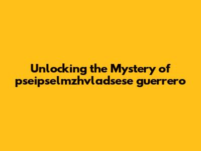 Unlocking The Mystery Of Pseipselmzhvladsese Guerrero
