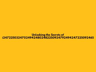 Unlocking The Secrets Of I247225032470249424802482250924792494247225092465