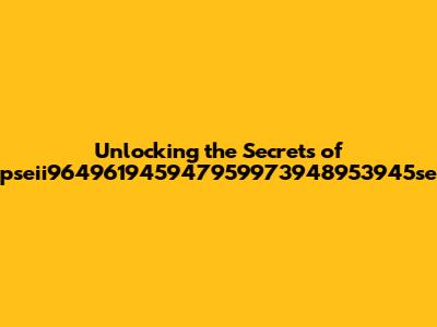Unlocking The Secrets Of Pseii964961945947959973948953945se