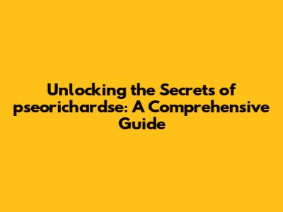 Unlocking The Secrets Of Pseorichardse: A Comprehensive Guide