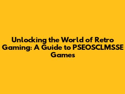 Unlocking The World Of Retro Gaming: A Guide To PSEOSCLMSSE Games