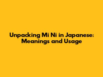 Unpacking 'Mi Ni' In Japanese: Meanings And Usage