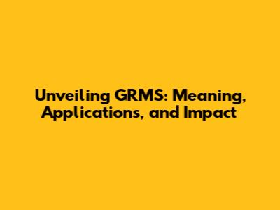 Unveiling GRMS: Meaning, Applications, And Impact