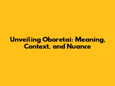 Unveiling Oboretai: Meaning, Context, And Nuance