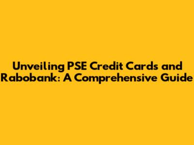 Unveiling PSE Credit Cards And Rabobank: A Comprehensive Guide