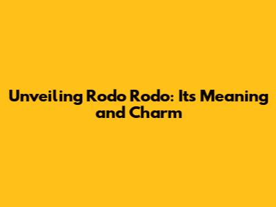 Unveiling Rodo Rodo: Its Meaning And Charm