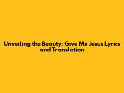 Unveiling The Beauty: Give Me Jesus Lyrics And Translation