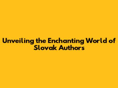Unveiling The Enchanting World Of Slovak Authors