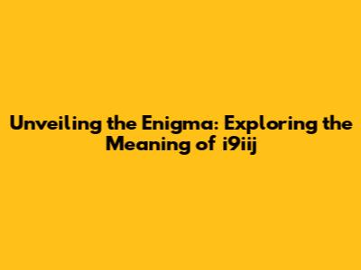 Unveiling The Enigma: Exploring The Meaning Of I9iij