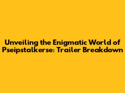 Unveiling The Enigmatic World Of Pseipstalkerse: Trailer Breakdown
