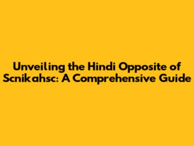 Unveiling The Hindi Opposite Of 'Scnikahsc': A Comprehensive Guide