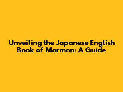 Unveiling The Japanese English Book Of Mormon: A Guide