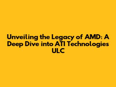 Unveiling The Legacy Of AMD: A Deep Dive Into ATI Technologies ULC