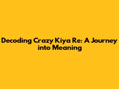 Unveiling The Meaning Of 'Crazy Kiya Re': A Deep Dive