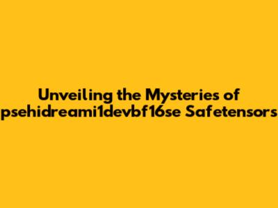 Unveiling The Mysteries Of Psehidreami1devbf16se Safetensors