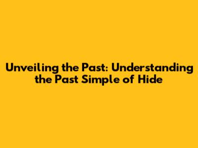 Unveiling The Past: Understanding The Past Simple Of Hide